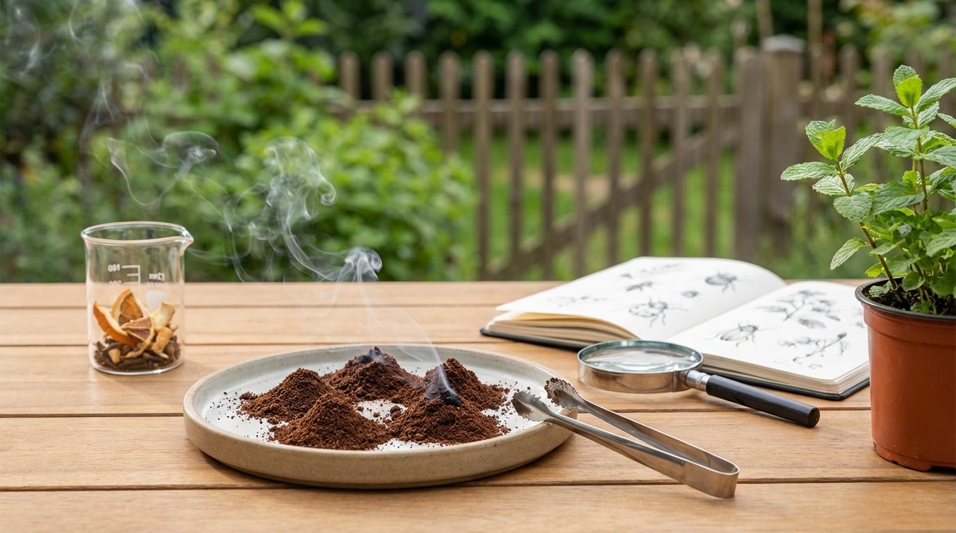 Oui, c’est une solution répulsive réelle. La combustion lente du marc de café libère des composés organiques volatils (comme la caféine et les diterpènes) que les guêpes détestent. L’odeur forte et la fumée perturbent leurs récepteurs olfactifs, créant une zone d’inconfort qui les éloigne de votre table.